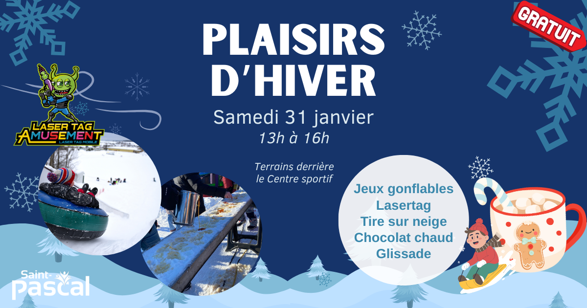 Le 31 janvier, de 13h à 16h, c'est Plaisirs d'hiver sur les terrains derrière le Centre sportif! Une activité gratuite et ouverte à toute la famille.